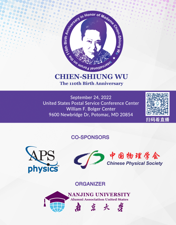 2022 marks the 110th birth anniversary of Prof. Chien-Shiung Wu. The Chinese Physical Society and the American Physical Society jointly hosted the International Forum on the 110th Birth Anniversary in honor of Madame C. S. Wu. And Nanjing University Alumni Association United States organized the event in Washington, US on the 24th of September. Over 120,000 online and offline audiences attended.