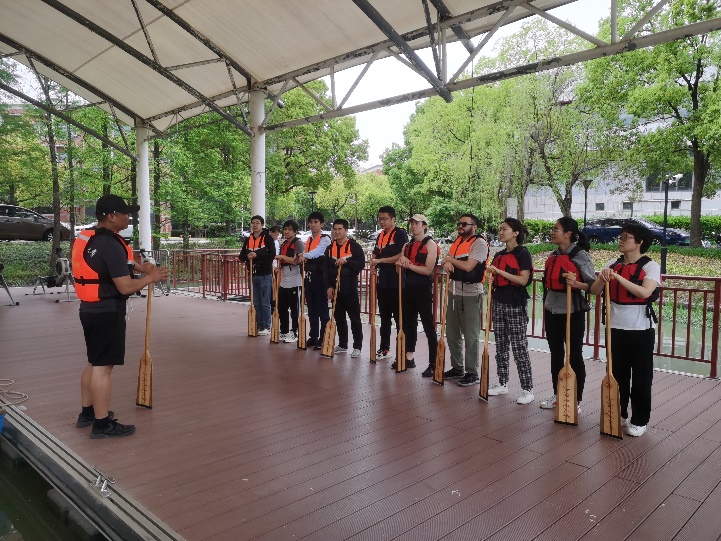 During the training session, TDLI’s team, consisting of both Chinese and international faculty, learned basic rowing skills and the importance of teamwork and coordination through onshore exercises and on-boat drills led by three coaches (Xiaojuan Yu, Yahua Wang and Aiming Xia) from different SJTU schools/colleges. They also observed and learned from the demonstrations of SJTU’s professional dragon boat training team. Through repeated practice, the team has strengthened their sense of teamwork and improved their ability to work together, laying the foundation for their participation in the upcoming Zhangjiang Cup Dragon Boat Race.
