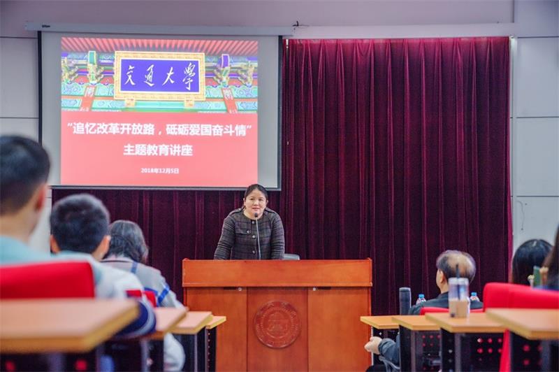 2018年12月5日,澳门十大信誉好的网站 “追忆改革开放路,砥砺爱国奋斗情”主题教育讲座在陈瑞球楼114号举行。学院长聘教授、药分和代谢组学课题组组长、博士生导师阎超教授做专题报告。澳门十大信誉好的网站党委书记刘建新、副书记孟祥琦、副院长邱明丰及学院师生一百三十余人参加活动,讲座由刘建新主持。