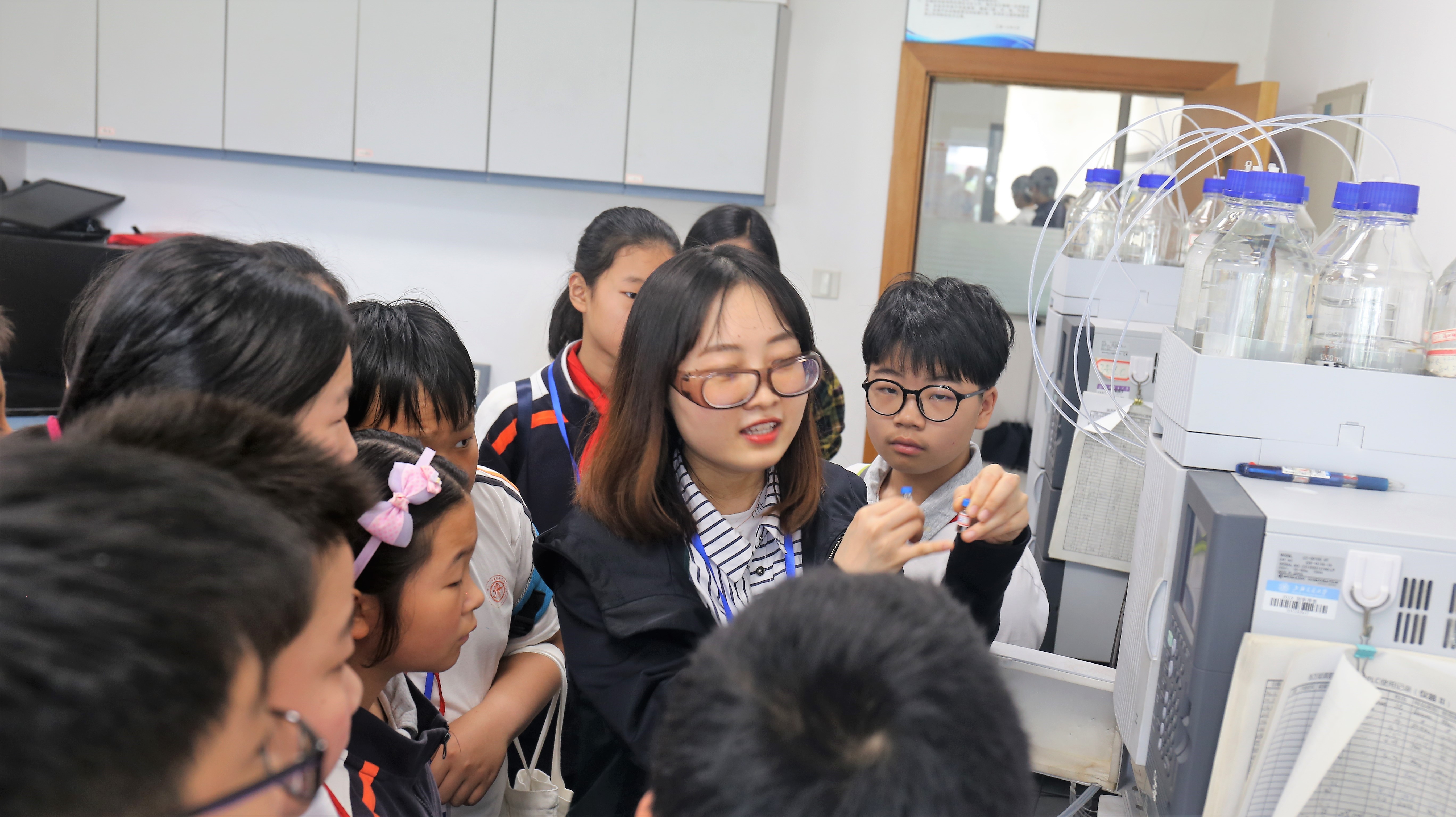 然后,学生们被分成三组,依次进行中药标本参观、动手实验和样品分析等活动环节。通过观察和实验,让每一位同学了解到所有的科研成果都是从这些普通的实验台通过科研工作者的不断努力而完成的。