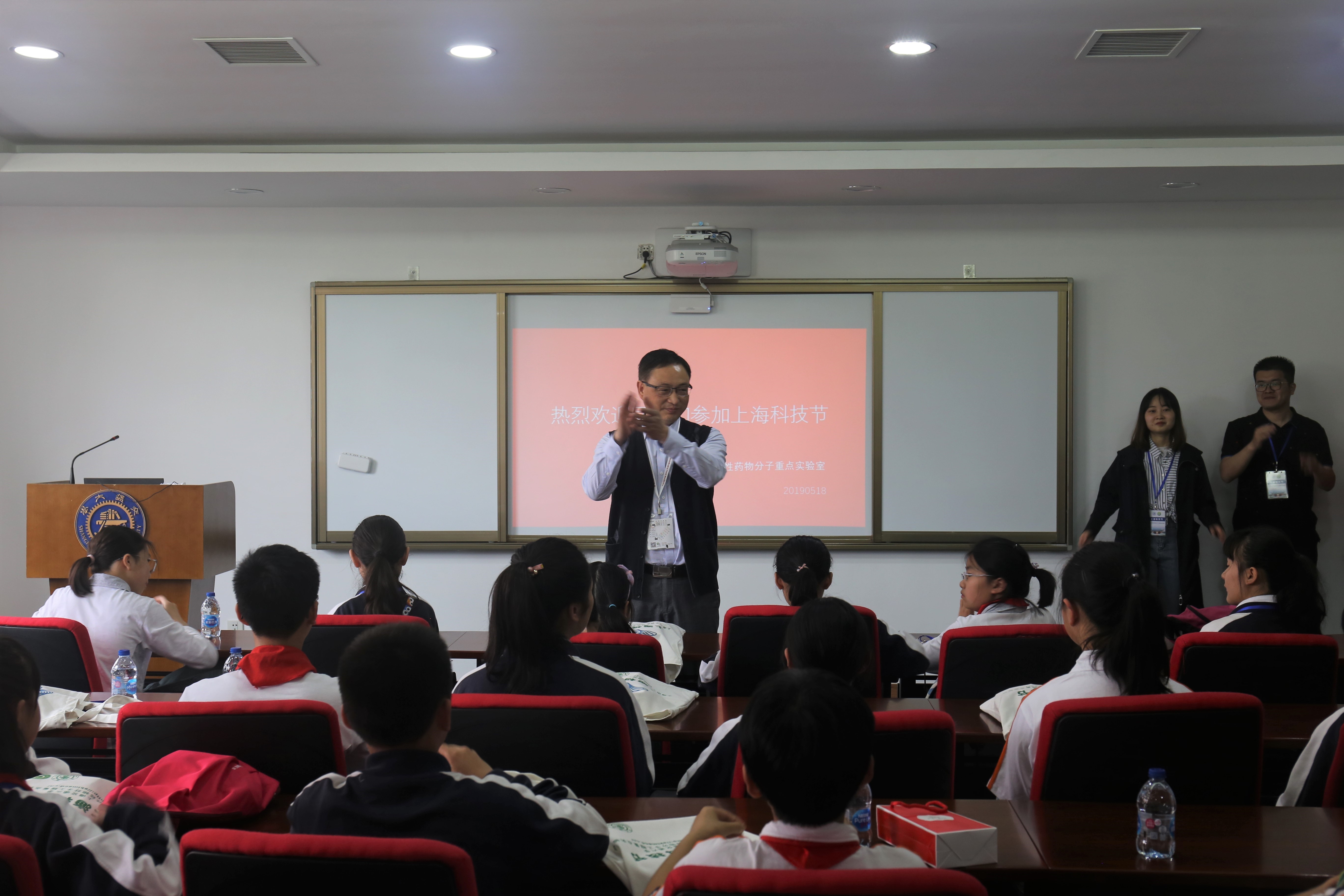 为了弘扬科学精神,普及科学知识,激发青少年学生勤奋学习和服务社会的热情,上海市手性药物分子工程重点实验室于2019年5月18日在澳门十大信誉好的网站闵行校区顺利举办了2019上海市科技节开放交流活动。重点实验室主任、澳门十大信誉好的网站化学化工学院张万斌教授、重点实验室副主任、澳门十大信誉好的网站刘德龙教授、重点实验室秘书吴正兴老师以及来自化学化工学院和澳门十大信誉好的网站的多位老师和学生志愿者们参与此次活动。同时,活动也得到澳门十大信誉好的网站电子信息与电气工程学院魏浩教授、交通大学第二附属中学梅佳等老师和同学们的大力支持和帮助。