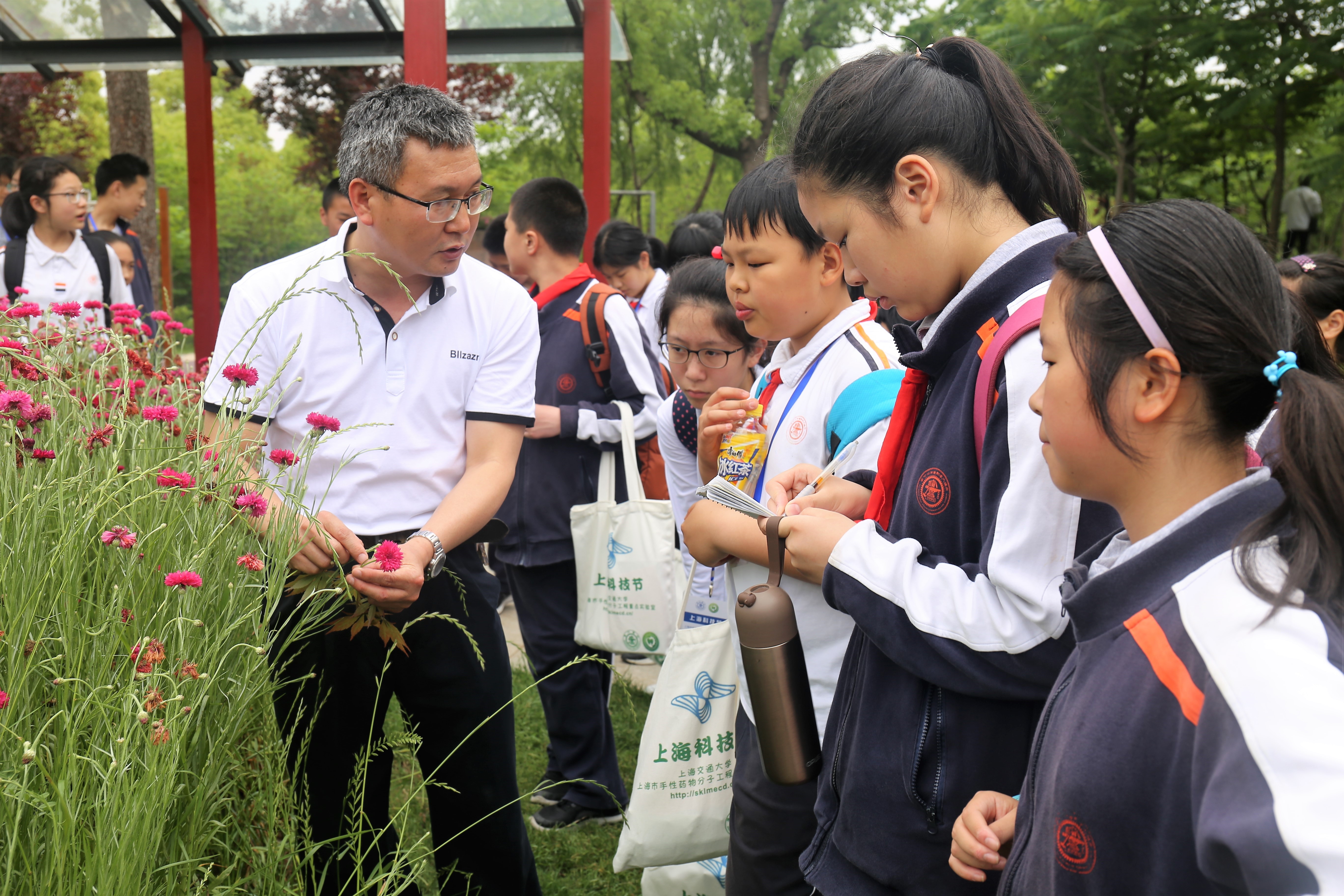 在品尝交大精美的午餐后,同学们开始“走进植物园——认识药用植物”的活动。我们有幸邀请到澳门十大信誉好的网站王梦月和刘忠两位教授专家为同学们讲述了一个不一样的植物园。路边的一朵小花、一片树叶、一根枝条,在两位教授的嘴里瞬间化成为治病救人的药材。通过在植物园的实地观察,让同学们近距离地了解“牡丹和芍药”、“玫瑰与月季”等植物的不同。两位教授也通过各种中药的典故让同学们对中草药产生了浓厚的兴趣。