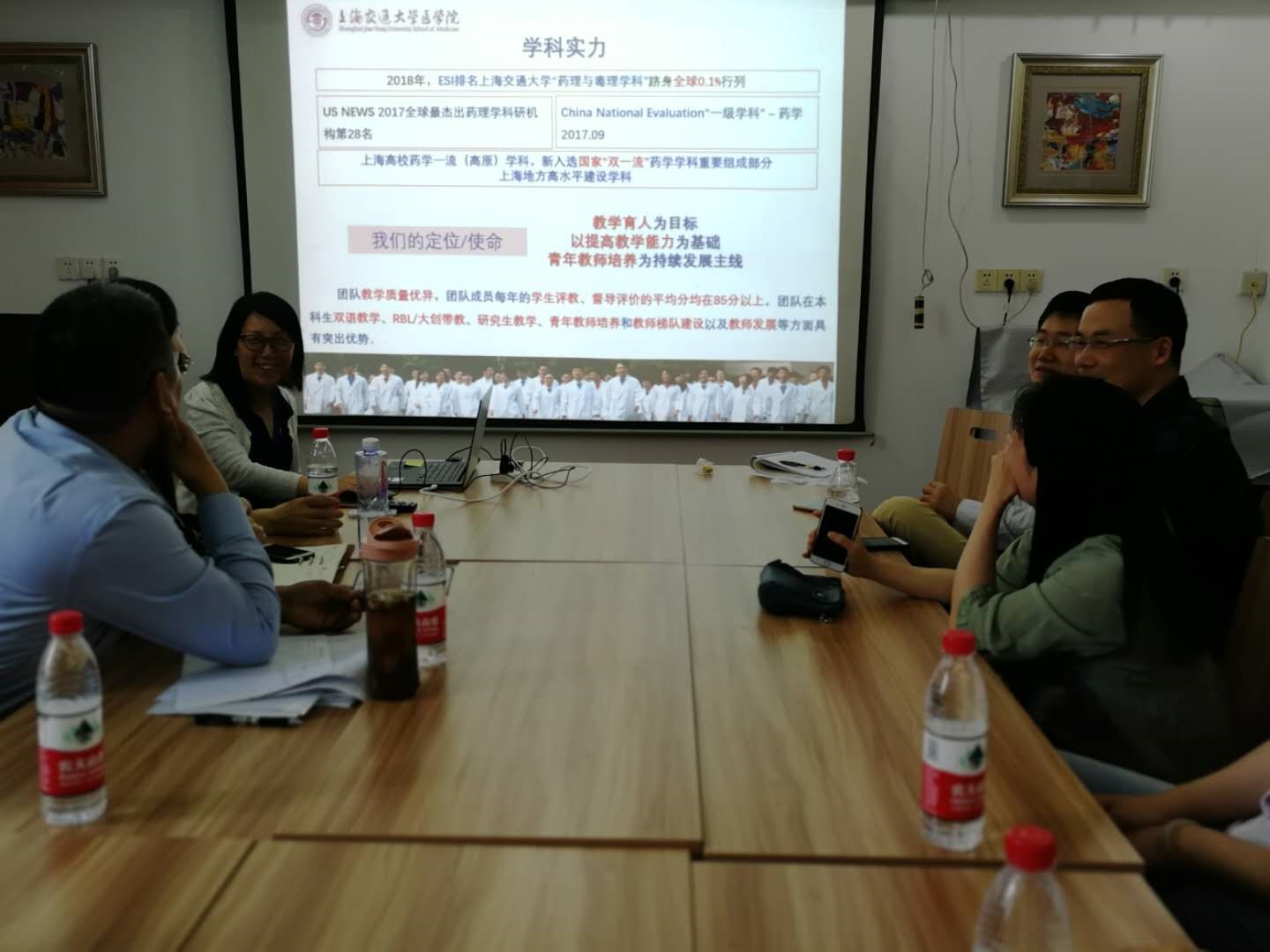 参观结束后进行了座谈,澳门十大信誉好的网站药物研制支部书记邱明丰研究员、副院长、党委委员和药理与化学生物学支部书记李娟副教授分别介绍了支部的发展、科研、教学等,药理系常务副主任朱亮教授、党委委员对药理与化学生物学科特色进行了总结,副书记兼副院长张宝红副教授对学科评估中基础医学院给予的支持表示感谢并希望继续共同努力“”双一流建设”、共同迎接即将到来的新一轮学科评估。随后,两个支部党员们重点介绍了各自在教学与科研的心得和经验、科研合作兴趣与需求、学生培养等方面进行了进一步的交流。同时,同志们深入探讨如何通过合作来共同推动更高层次上建设澳门十大信誉好的网站一流药学学科。现场气氛热烈,大家一致表示以后要加强双方的互动,促进优势互补,紧密合作。最后合影留恋,并期待再次开展联合主题党日活动。