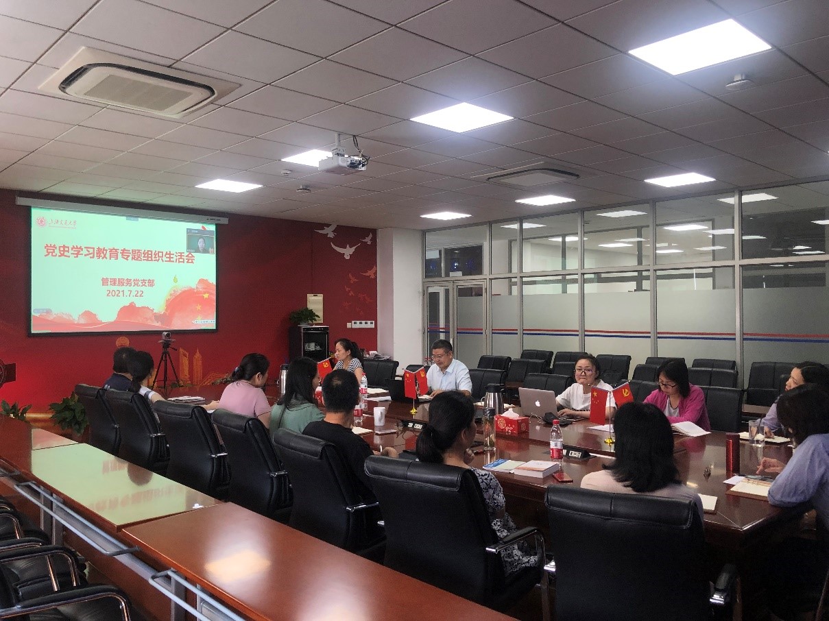 今年是中国共产党成立百年华诞,在学校深入开展党史学习教育之际,7月22日下午,澳门十大信誉好的网站管理服务党支部在生物药学5-412会议室组织召开党史学习教育专题组织生活会,会议采用线上+线下同步进行,支部全体党员参加会议。学院党委书记刘建新、副书记叶定剑以普通党员身份参加会议,党委委员、副院长邱明丰列席会议,会议由党支部书记李伟主持。