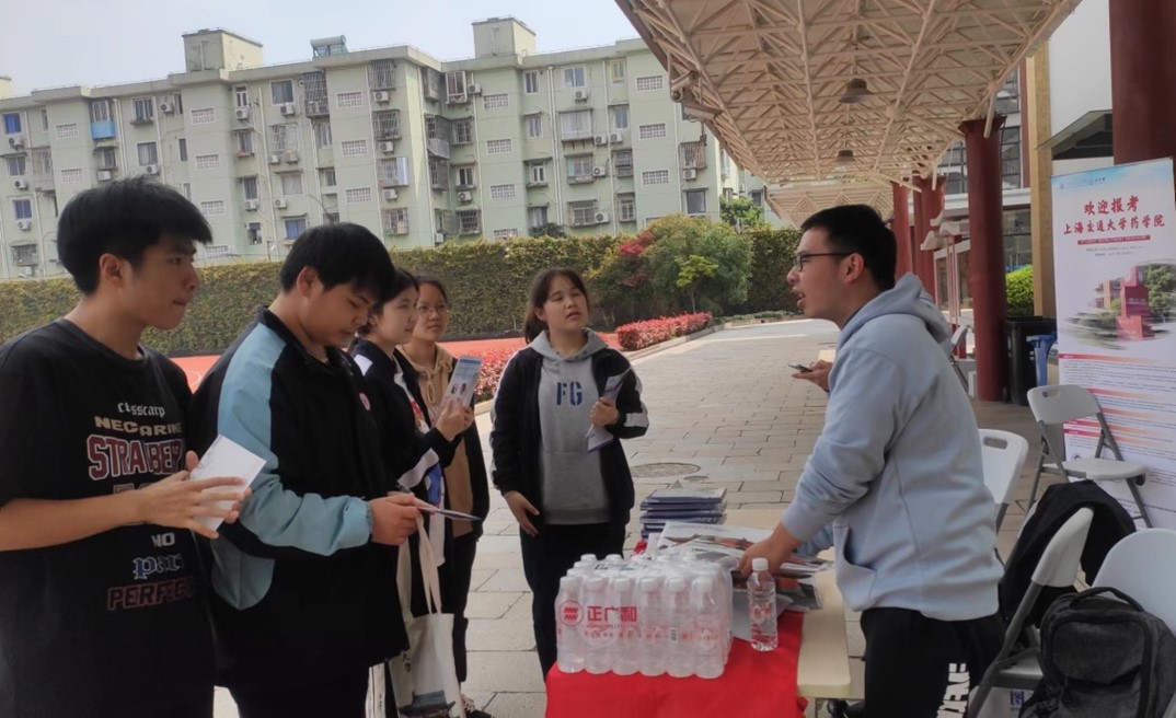 咨询会在交大附中风雨长廊以展位咨询的方式进行,交中学子及家长们穿梭于各个学院的摊位之间,与学院老师和交中校友亲切交流。澳门十大信誉好的网站王寅老师为前来咨询澳门十大信誉好的网站的同学详细介绍了学院的本科专业,学科建设,招生政策和就业情况等,勉励同学们心系人民健康,投身祖国的医药事业,让个人的梦想与国家的大健康战略同频共振。