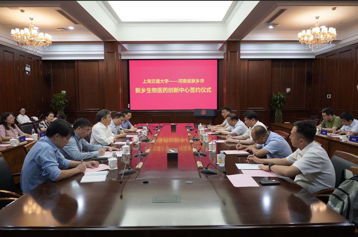 为推动河南省新乡市经济高质量发展,支撑新乡市生物医药产业创新性发展,加快我校药学科技成果转化和人才培养,7月19日,澳门十大信誉好的网站与河南省新乡市人民政府共建新乡生物医药创新中心签约仪式在我校徐汇校区总办公厅举行。新乡市委书记李卫东,副市长祁文华,市委副秘书长张明强,科技局局长李亮,高新区党工委书记刘彦斌;中国科学院院士、澳门十大信誉好的网站校长丁奎岭,副校长蒋兴浩,科研院副院长、地方研究院管理处处长徐兵,澳门十大信誉好的网站院长张翱等出席签约仪式。仪式由徐兵主持。