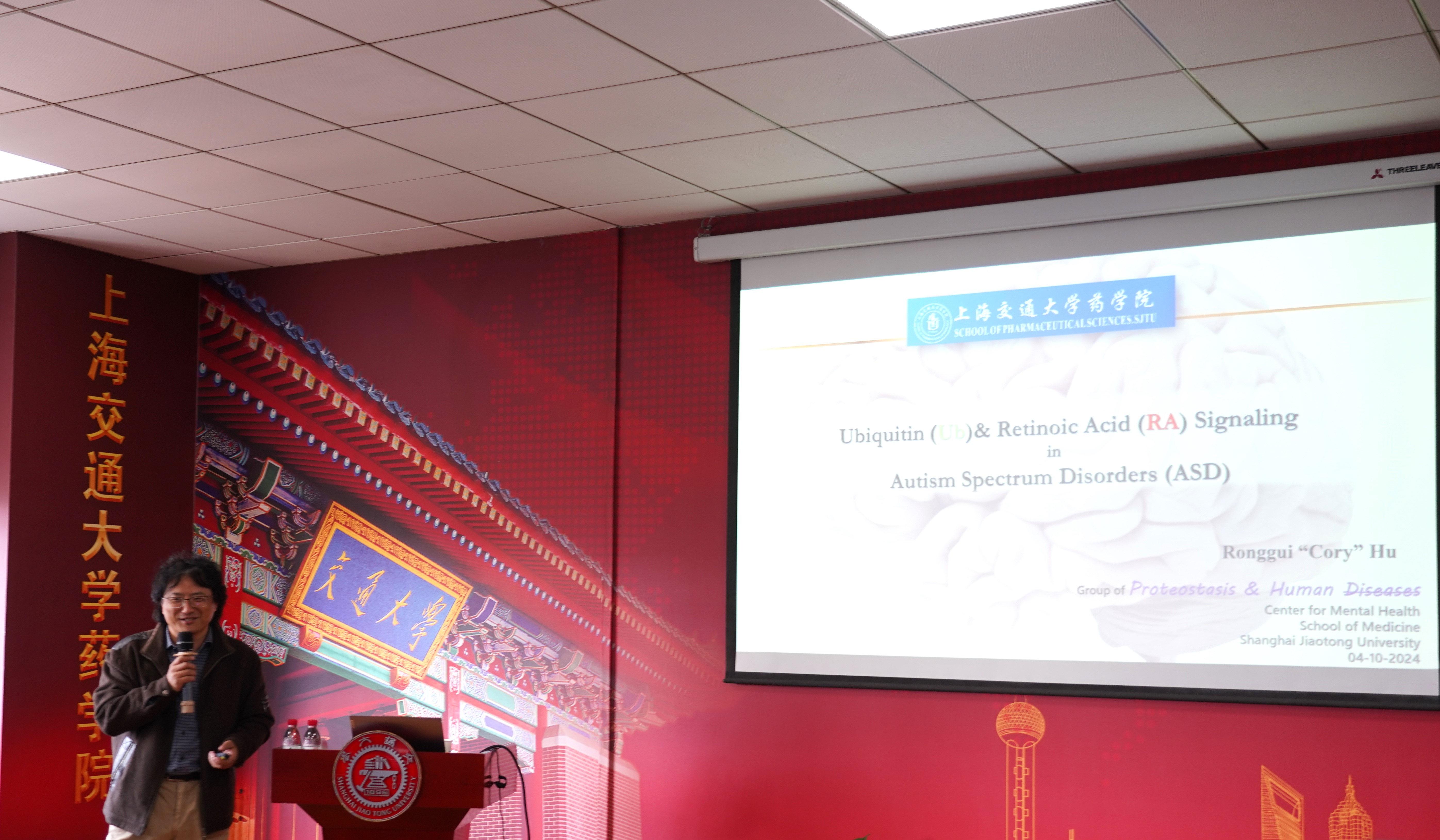 4月10日,澳门十大信誉好的网站医学院松江研究院仇子龙特聘教授及澳门十大信誉好的网站附属精神卫生中心胡荣贵特聘教授受邀访问澳门十大信誉好的网站,做客上海市药物靶标发现及递送前沿科学研究基地举办的“自闭症研究前沿学术论坛”进行学术交流并作学术报告。澳门十大信誉好的网站院长、上海市药物靶标发现及递送前沿科学研究基地主任张翱主持报告会,副院长钱峰、院长助理邓刘福等出席会议,相关师生代表50余人参加。
