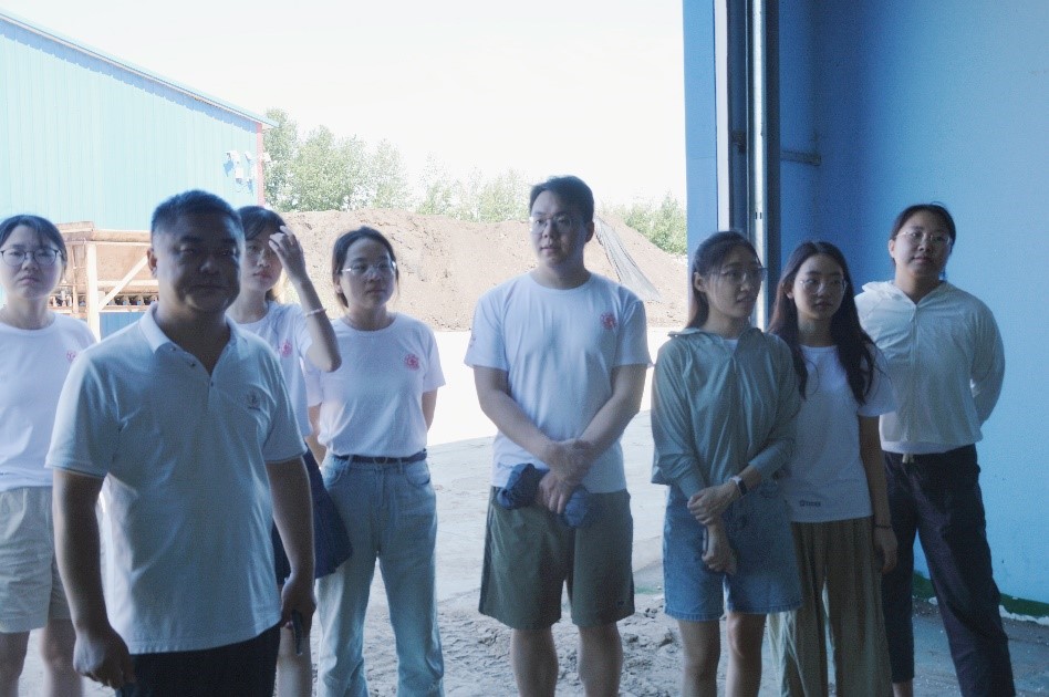 实践团到达菌菇渣发酵生产肥料的合作基地内蒙古九邦农业科技有限公司实地参观调研。陈总就原料获取、生产发酵、产品销售等方面进行了详细的介绍。该生产基地共有固体有机肥料、液体肥料两种主要生产线,会根据客户的不同需求订制含不同元素的肥料,公司每年有机肥生产量达10万余吨,液体肥3万余吨。