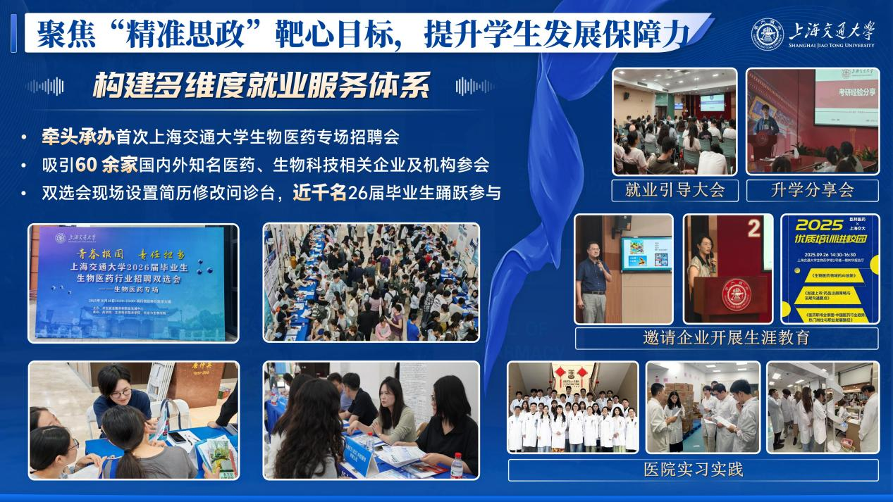 学院秉承“扶上马、送一程、关怀一生”的理念,通过一系列扎实有效的举措,全方位、多层次助力学生职业发展。明确高水平学术就业、医药百强企业、选调生及基层服务三大就业引导方向,全面完善学院就业引导目录,召开就业启动大会,分析当前就业形势、关键就业节点与就业准备工作;举办《中国医药行业就业现状》《药品注册流程与加速上市流程》等专题职业发展讲座,帮助毕业生精准把握医药领域岗位需求与发展趋势。开展“走进行业、洞察未来”就业引导活动,针对低年级学生,组织行业认知实践,走进国家化合物样品库、上海药物所、仁济医院等机构单位,初步了解生物医药“研发-生产-应用”全链条;针对高年级学生,组织就业实习实践,走访参观国药集团、上药集团、药明康德、华润医药等龙头企业,深度了解药企岗位的工作内容、能力要求与职业前景。牵头承办首次澳门十大信誉好的网站生物医药专场招聘会,吸引60余家国内外知名生物医药企业/单位参会,双选会现场设置简历修改问诊台,千余名26届毕业生踊跃参与;邀请出国深造、优质就业、保研升学、考研成功、选调录用等不同路径毕业生代表分享交流,为毕业生提供经验参考;实施思政“一帮一”精准结对计划,建立动态就业数据库,每周更新、实时掌握求职进展,重点关心服务困难生、少数民族地区毕业生。